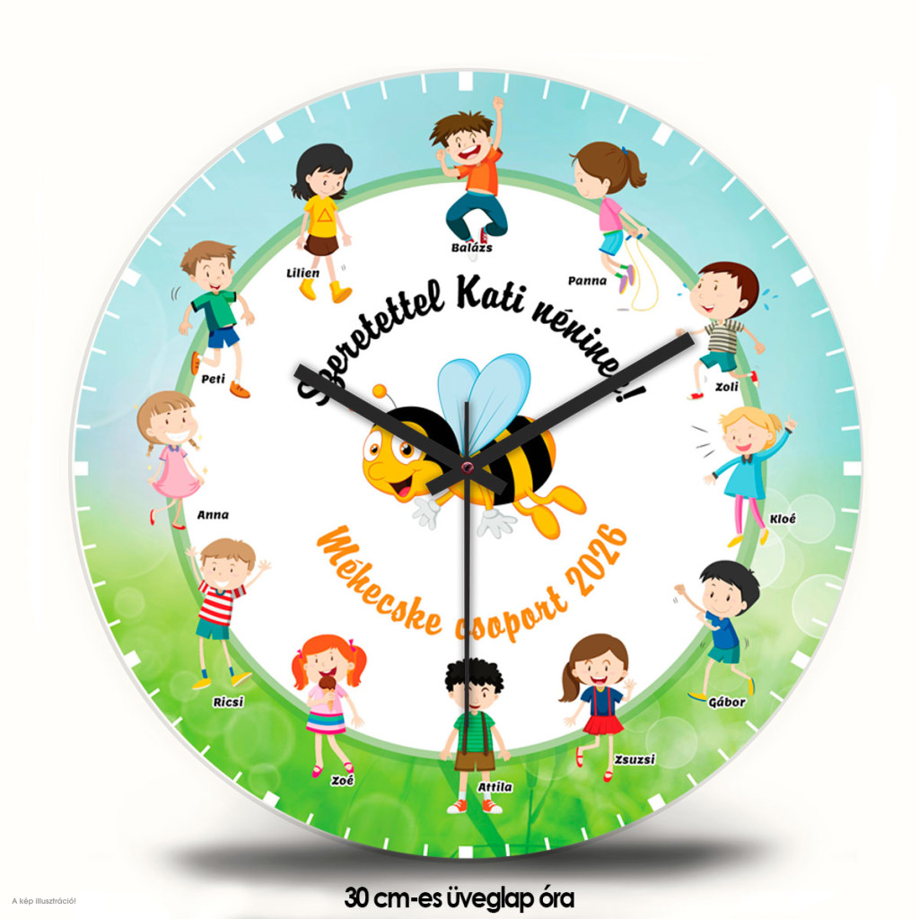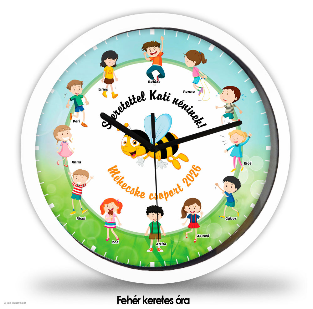 Ez a személyre szabott falióra tökéletes ajándék óvónéninek, tanítónéninek, pedagógusnak vagy akár az egész csoport emlékére. Ideális választás ballagásra, évzáróra vagy búcsúajándéknak.